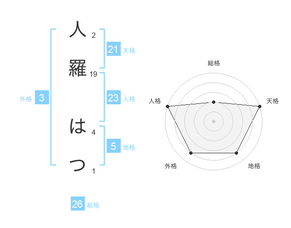 人羅 はつさんの総格は26画の2点!