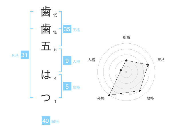 歯歯五 はつさんを姓名の画数から五運を鑑定