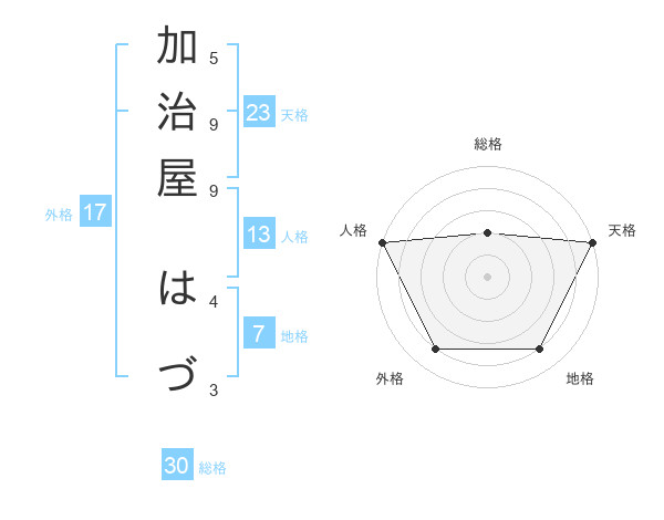 加治屋 はづさんを姓名の画数から五運を鑑定