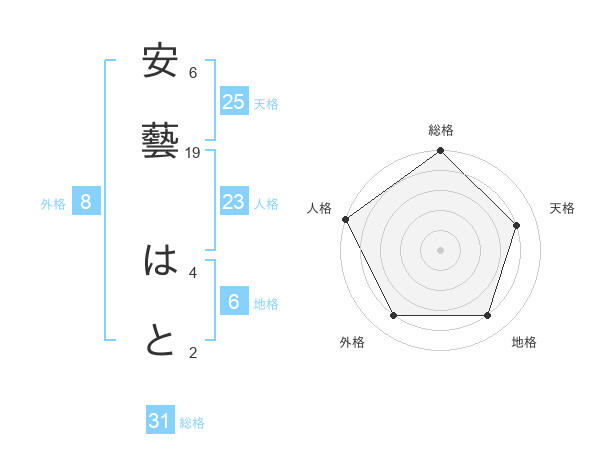 安藝 はとさんの総格は31画の5点!