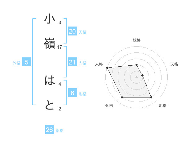 小嶺 はとさんの総格は26画の2点!