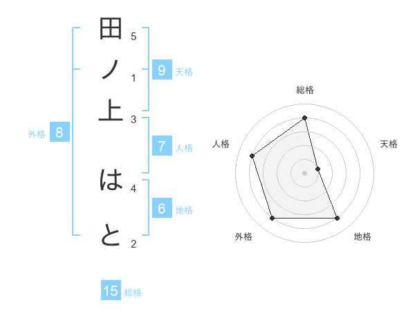 田ノ上 はとさんを姓名の画数から五運を鑑定