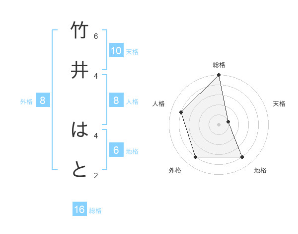 竹井 はとさんの総格は16画の5点!