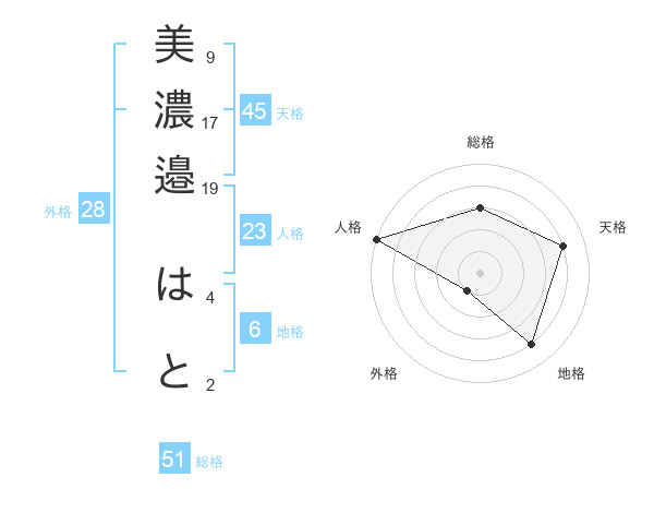 美濃邉 はとさんを姓名の画数から五運を鑑定