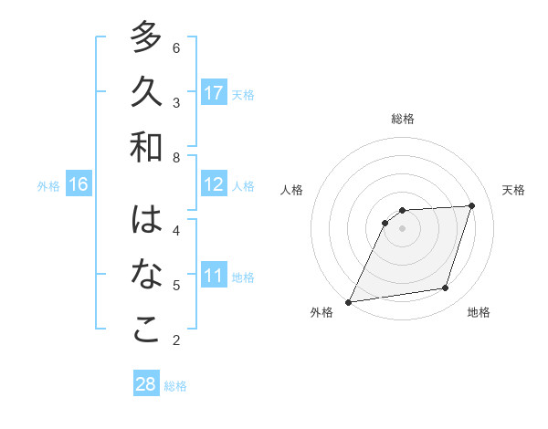 多久和 はなこさんを姓名の画数から五運を鑑定