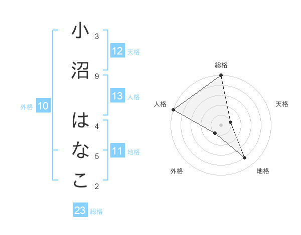 小沼 はなこさんを姓名の画数から五運を鑑定
