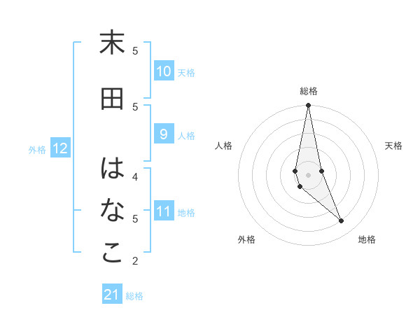 末田 はなこさんの総格は21画の5点!