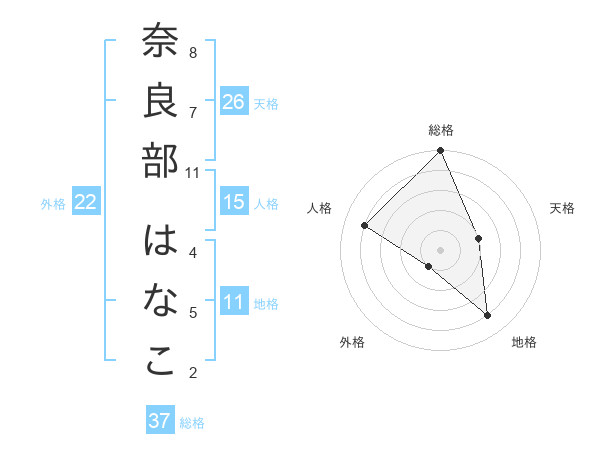 奈良部 はなこさんの地格は11画の4点!
