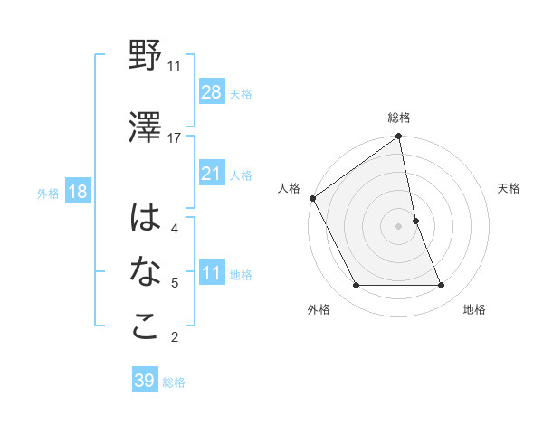 野澤 はなこさんの外格は18画の4点!