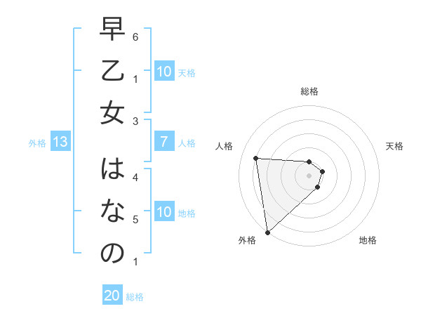 早乙女 はなのさんの総格は20画の1点!