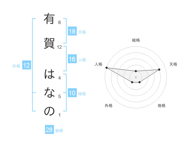 有賀 はなのさんの天格は18画の4点!