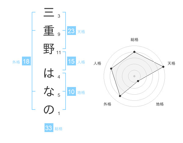 三重野 はなのさんを姓名の画数から五運を鑑定