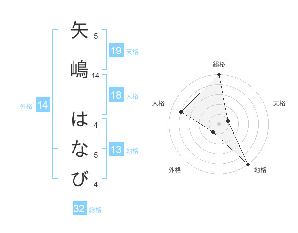 矢嶋 はなびさんの地格は13画の5点!