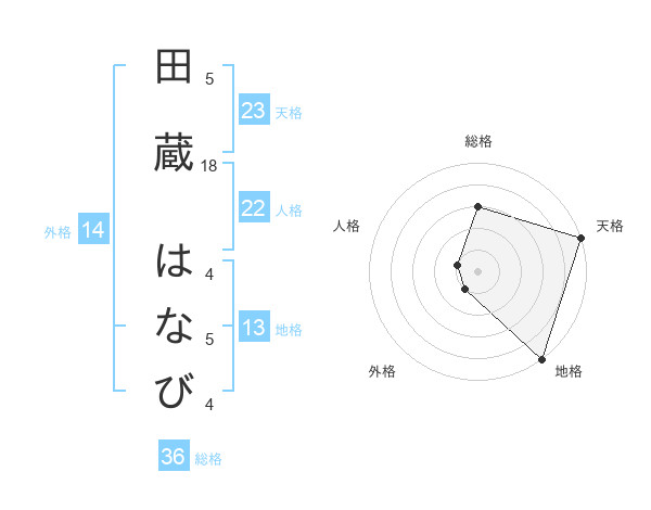 田蔵 はなびさんを姓名の画数から五運を鑑定