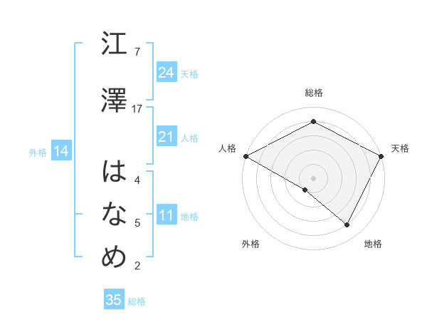 江澤 はなめさんの総格は35画の4点!