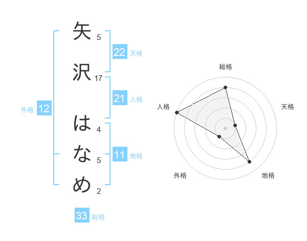 矢沢 はなめさんを姓名の画数から五運を鑑定