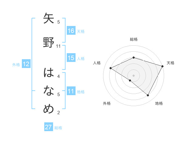 矢野 はなめさんを姓名の画数から五運を鑑定