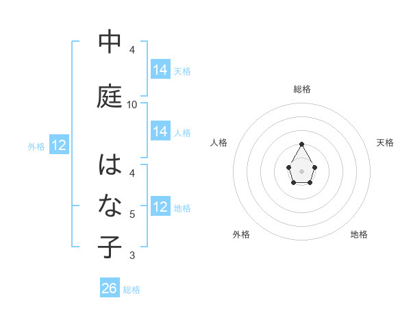 中庭 はな子さんの総格は26画の2点!