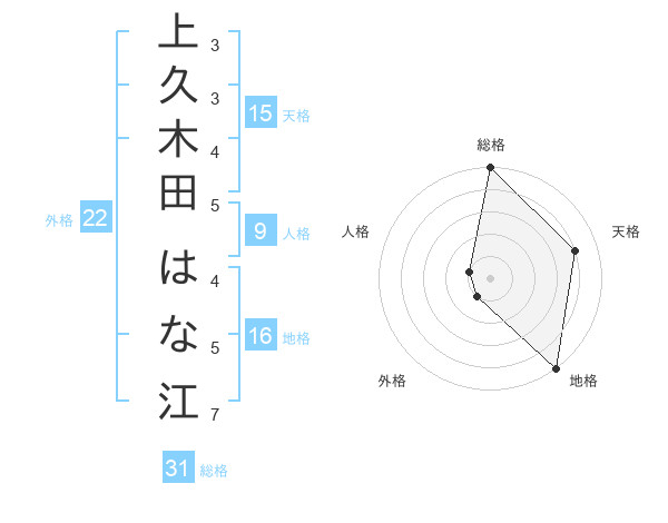 上久木田 はな江さんを姓名の画数から五運を鑑定