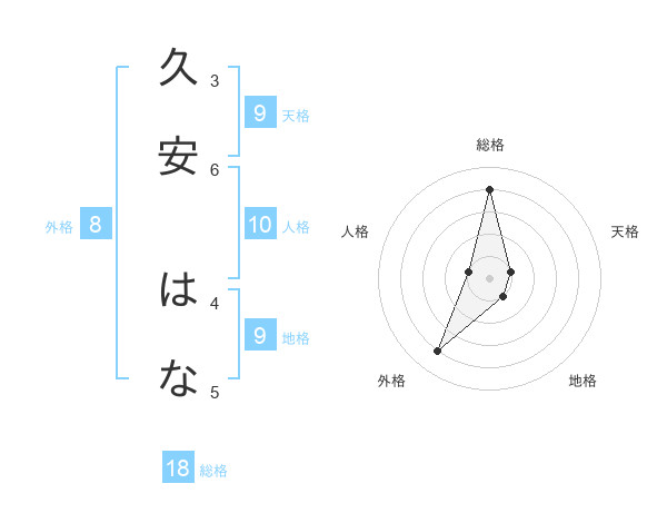 久安 はなさんの総格は18画の4点!