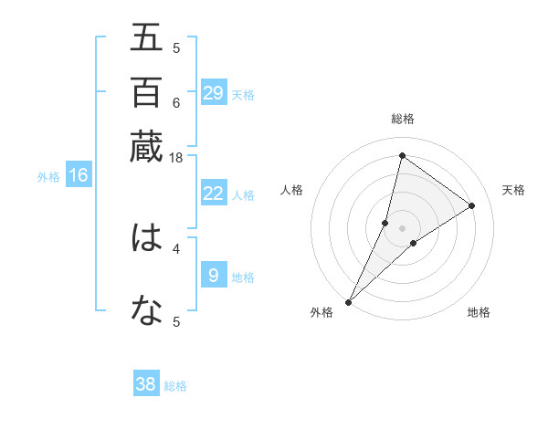 五百蔵 はなさんを姓名の画数から五運を鑑定