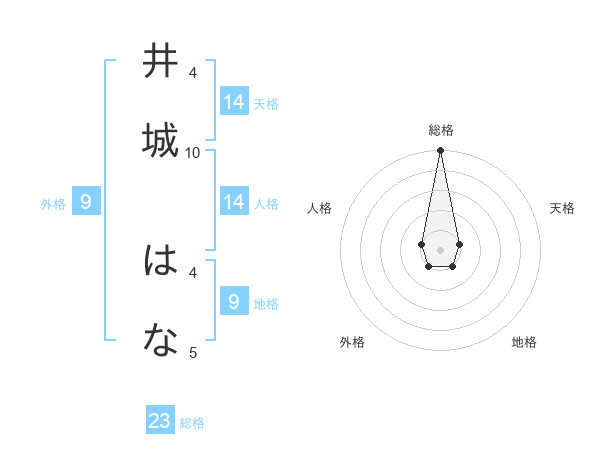 井城 はなさんの総格は23画の5点!