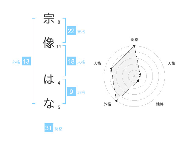 宗像 はなさんの外格は13画の5点!
