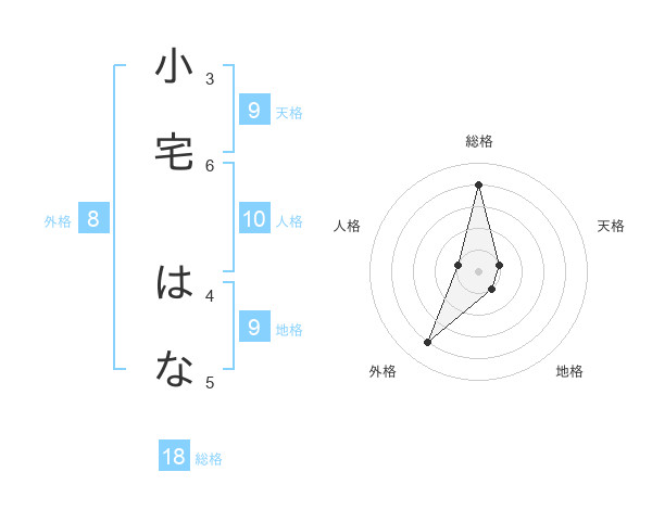 小宅 はなさんの総格は18画の4点!