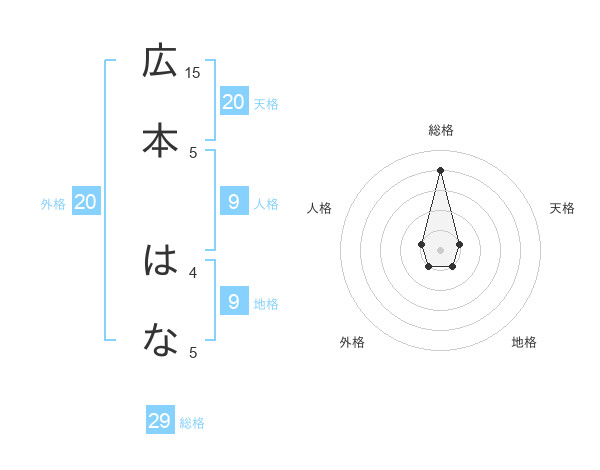 広本 はなさんの総格は29画の4点!