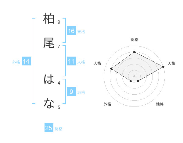 柏尾 はなさんの天格は16画の5点!