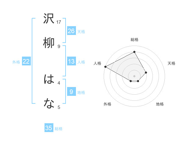 沢柳 はなさんの総格は35画の4点!