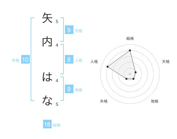 矢内 はなさんの総格は18画の4点!