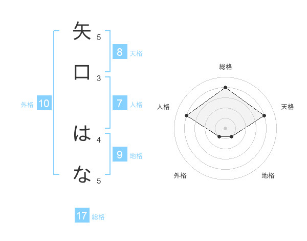 矢口 はなさんの総格は17画の4点!