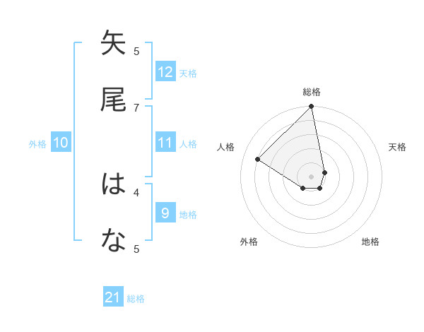 矢尾 はなさんを姓名の画数から五運を鑑定