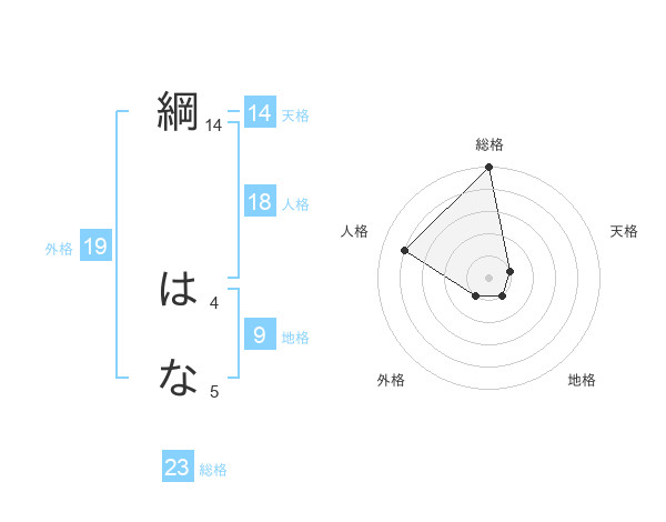 綱 はなさんの総格は23画の5点!