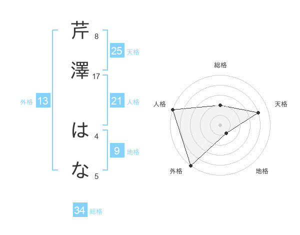芹澤 はなさんの天格は25画の4点!
