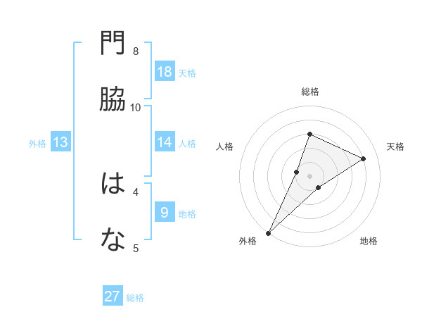 門脇 はなさんを姓名の画数から五運を鑑定