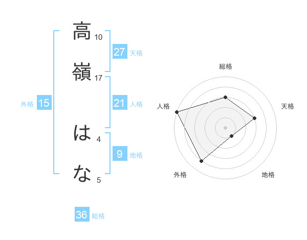高嶺 はなさんの天格は27画の3点!