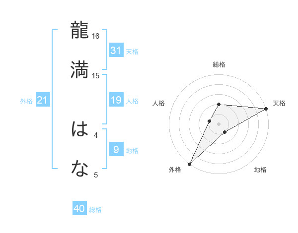 龍満 はなさんの外格は21画の5点!