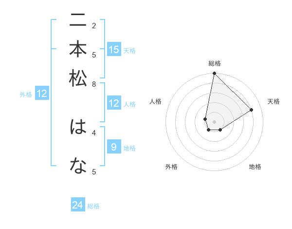 二本松 はなさんの総格は24画の5点!