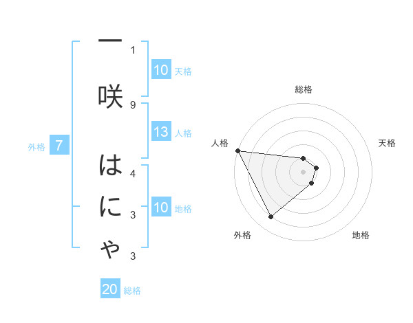 一咲 はにゃさんを姓名の画数から五運を鑑定