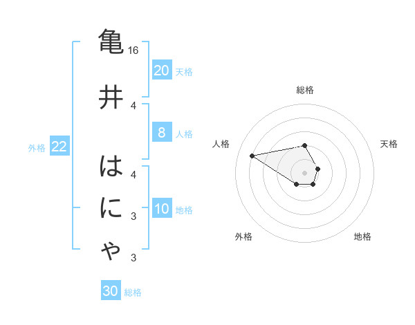 亀井 はにゃさんの天格は20画の1点!