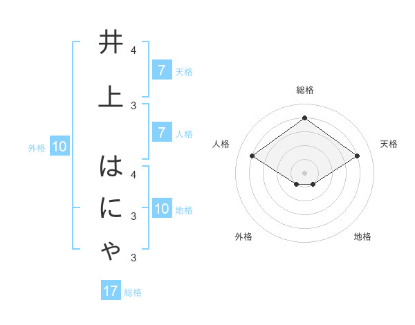 井上 はにゃさんの総格は17画の4点!