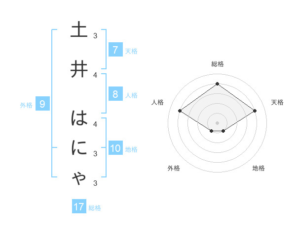 土井 はにゃさんを姓名の画数から五運を鑑定