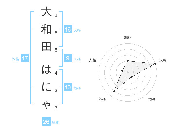 大和田 はにゃさんを姓名の画数から五運を鑑定