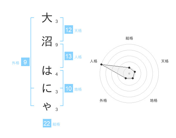 大沼 はにゃさんを姓名の画数から五運を鑑定