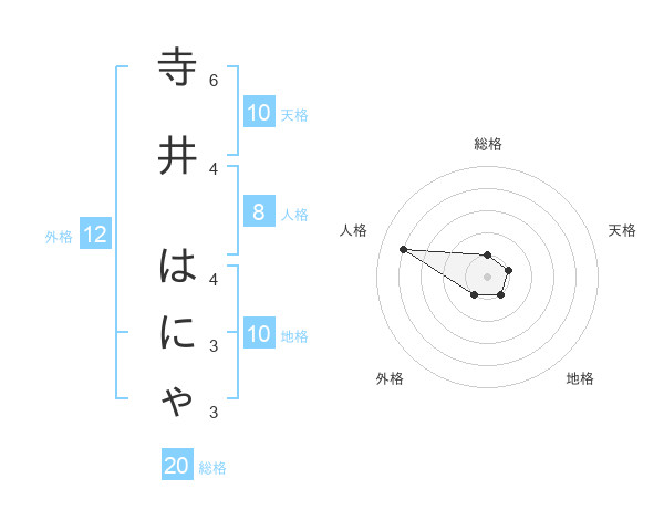 寺井 はにゃさんの総格は20画の1点!