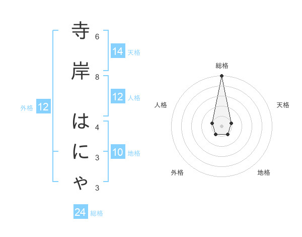 寺岸 はにゃさんを姓名の画数から五運を鑑定