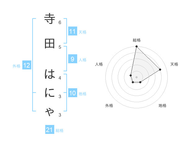 寺田 はにゃさんの総格は21画の5点!