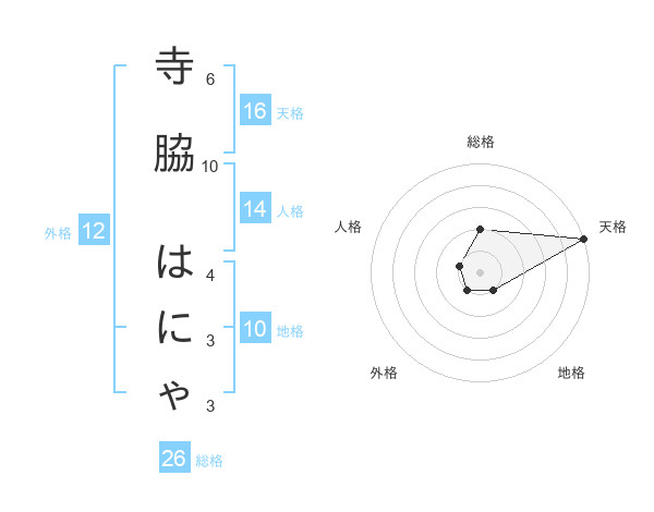 寺脇 はにゃさんの総格は26画の2点!